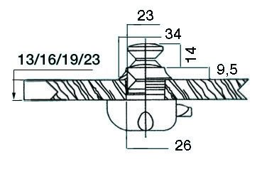 38.36.180 kilit için buton & halka. Delik Ø 26mm.