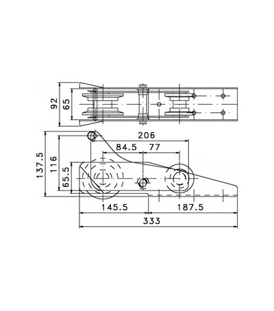Baş makarası. Oynarlı, paslanmaz çelik. 333x92x65.5 mm h.