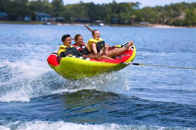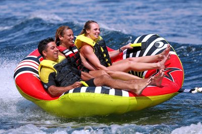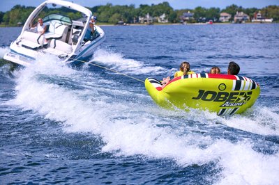 You'll feel like kings and queens on this 3-persons best-selling throne. Hop around like a frog behind the boat or go for a chill session on the shore. Use the molded drink holder to store an ice cold drink. The tall hang to the Anura's inflatable backrest and its seat provides hours of comfort and back support. The multifunctional Anura is ready for you! Its quick rope connector makes it super easy to connect- and disconnect and its luxurious neoprene knuckle-guard handles offer grip and comfort. It's double-stitched 420D nylon cover will hold season after season when the Anura is used as lounge chair and for extreme tubing.- 840 Denier nylon cover