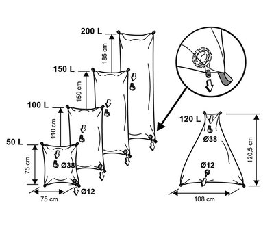 » 12mm. çapındaki çıkış valfleri ise tankın alt kısmında bulunmaktadır. (Bu yapı üçgen modellerde farklıdır, giriş ve çıkış valflerinin ikisi de tankın üst kısmında yer alır.)