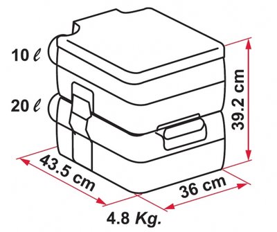 Portatif tuvalet. Pis su tankı kapasitesi 20 L.
