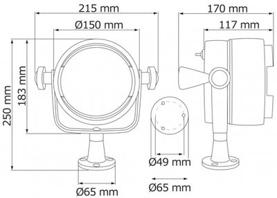 Projektör. Beyaz abs gövdeli, alüminyum ayaklı, kromaj braketli. Braketten çıkarılarak el projektörü olarakda kullanılabilir. 600 metreye kadar görüş mesafesi vardır. On-off switch su geçirmezdir. Projektör çapı 15 mm´dir. 40/60w