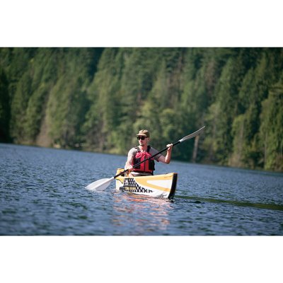 - Paket içeriği: yüksek basınçlı pompa, taşıma çantası, drop-stitch PVC koltuklar, kano küreği, slide-in center fin, tamir kiti
