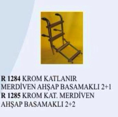 Krom Katlanır Merdiven Ahşap Basamaklı 2+2