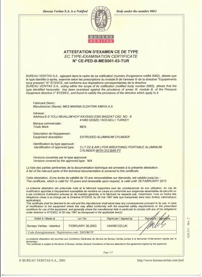 Dalış tüplerinin hiçbiri, boyutuna bakılmaksızın herhangi bir metreden sonra tehlike yaratmaz, fotoğraflarda gördüğünüz sertifikalar ile bu durum belgelenmektedir. Tüpler yüksek basınca dayanıklı özel sertleştirilmiş alüminyumdan imal edilmektedir ve buna göre sertifikalandırılmıştır.